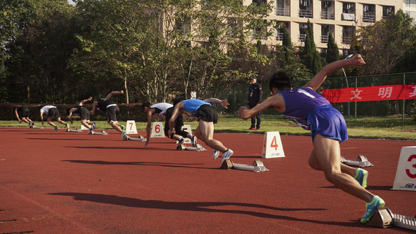 磨练的是非凡的毅力,较量的是超强的体力,拼搏的是出类拔萃的耐力,把长长的跑到跑成一段漫漫的长途,这是你们运动员的征途。听,呼啸的风,在为你们喝彩!听,观众席上如浪的欢呼,在为你们加油!这过程中或许有人欢呼呐喊;或许有人懊恼自责。但在今天,无论是场上的运动健儿还是场下统筹安排的后勤人员,都无一不体现出“永不放弃、永不气馁、永不低头”的体育精神,更展现了衢职学生的精气神!