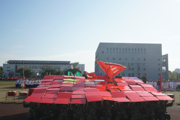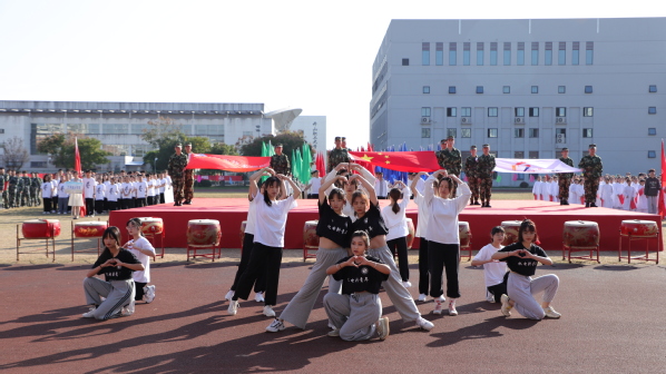 休闲体育专业的同学为大家带来旗鼓表演。红旗飘飘、战鼓雷鸣;由六个二级学院的400名2019级同学共同表演的节目是健身气功——八段锦,整齐划一,修身养性;校健美操舞姿曼妙,他们跃动的步伐洋溢着青春的活力,脸上欢快的笑容充满着自信,带动了会场的欢腾。
