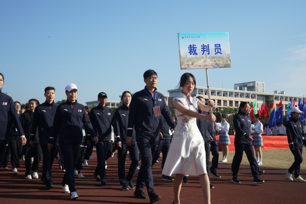 伴随着激昂的《运动员进行曲》,国旗队、校旗队、会徽队、彩旗队、裁判员队迈着整齐的步伐,气宇轩昂地踏入运动场。各二级学院运动员代表队方阵依次向我们走来,同学们步伐坚定,英姿飒爽,整齐的队伍,响亮的口号,展现了我校运动员朝气蓬勃的精神面貌,彰显了衢职学子奋发向上的青春气息。