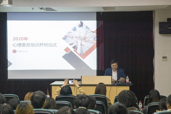 为进一步提升我校心理健康教育工作质量,提高心理健康工作队伍能力与素质,11月16日晚,学校在图书馆三号报告厅举行2020级班级心理委员培训开班仪式。校党委副书记王东升出席并讲话。学生处负责人,各二级学院党总支副书记、心理辅导员,2020级班级心理委员、心理协会成员等参加。